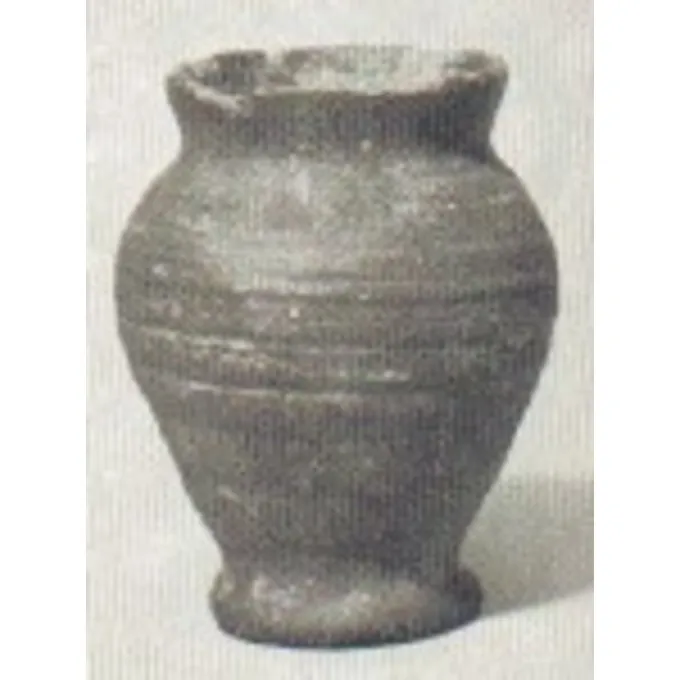 Dens højde er 10 cm, og det er lavet af ler fra Rhinlandet.