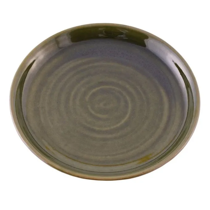 Denne plade har en diameter på ca.. 22 cm. Det er helt håndgjort og til hygienical formål det er glaseret