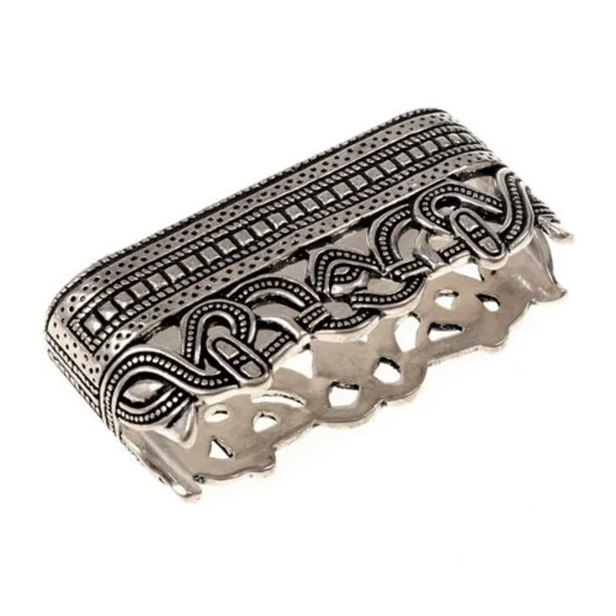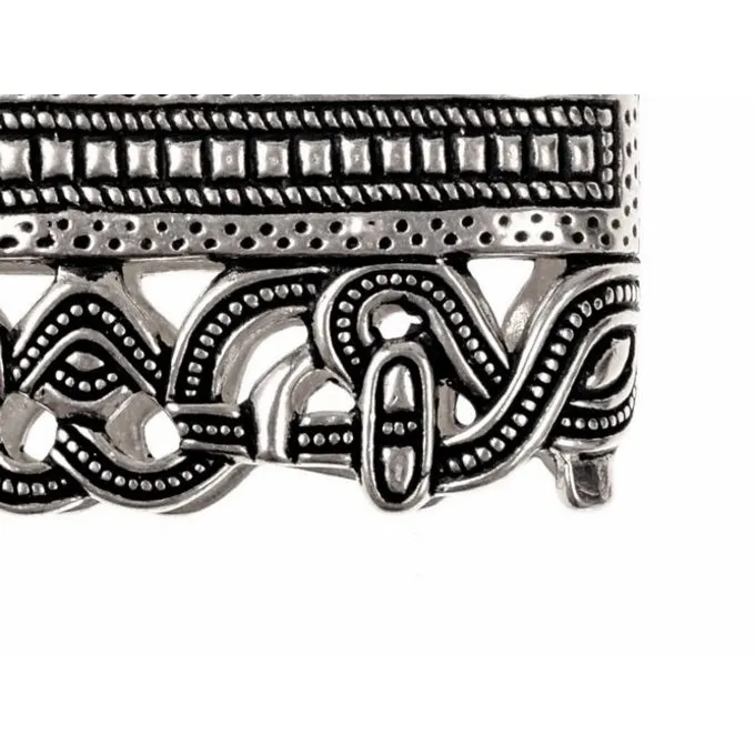 Mål: 5 x 2,2 cm / / Materiale: forsølvet bronze / / Egnet til sværdskeder af 4,8 x 1,2 cm / / Baseret på en historisk original