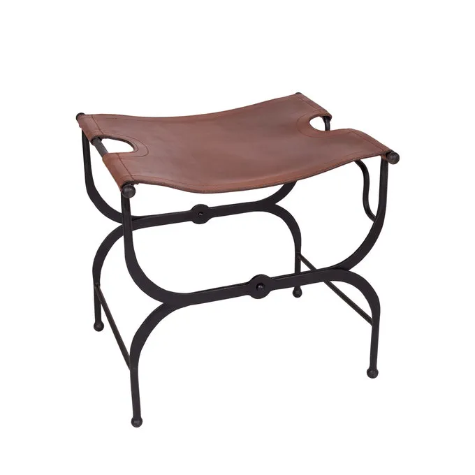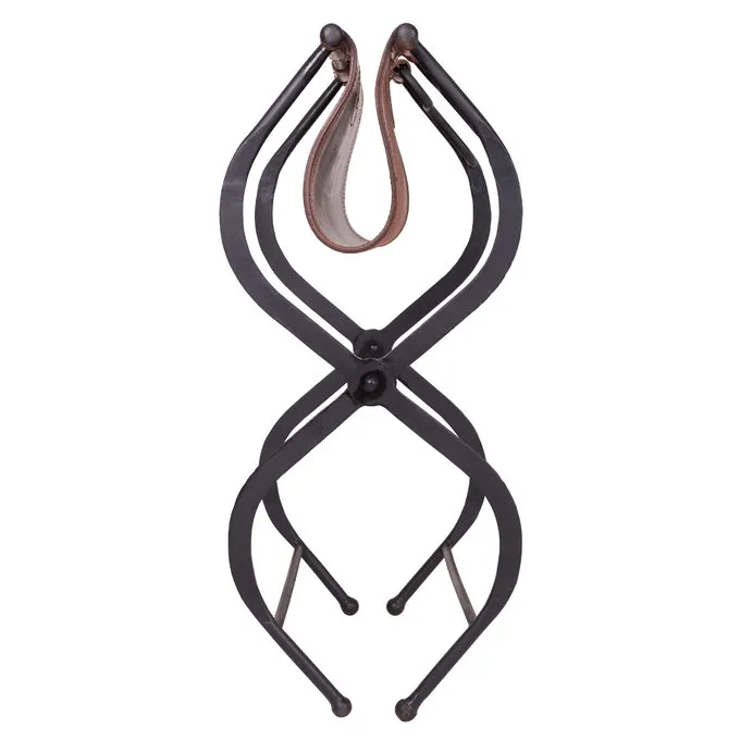 Materiale: jern, læder / Højde: 52 cm / Sæde størrelse: 53 x 45 cm / Dimensioner, når foldet: 74 x 49 x 31 cm / Vægt: 8. kg / Baseret på en historisk original
