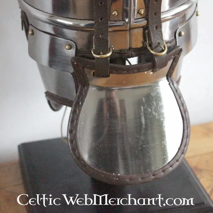 Dette stål replika er lavet efter en original fra Burgh Castle, Norfolk, England fra den 3.-4. århundrede e.Kr.. De senere romerske hjelm typer weren? T baseret på keltiske designs længere, men formentlig på hjelmene fra det persiske imperium, der var begyndt i denne periode. Omkring det 2. århundrede e.Kr. kavaleriet var blevet en væsentlig del af den romerske hær, selv om den forblev en sårbar enhed, en femtedel af hæren bestod af kavaleri.