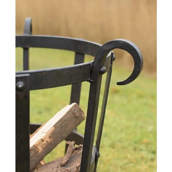 Alle dele af dette stål brand pit er hånd-smedet, og det er usynligt nitteed. En meget robust brand pit med et gitter som bund. Det er ca. 45 cm høj og vejer ca.. 9,5 kg. Diameteren af bunden er ca.. 26 cm, og diameteren af toppen er 36 cm. Til re-enactment, levende historie, larp og grill.