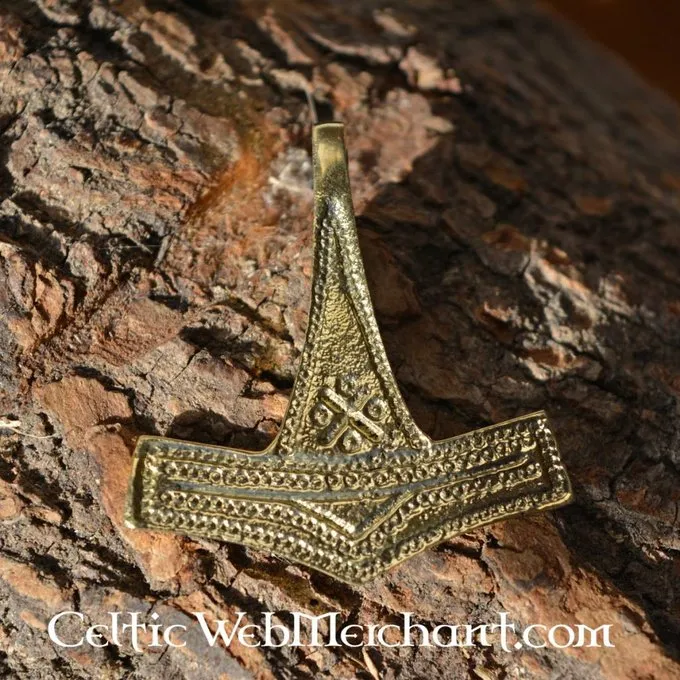 Denne Thor`s hammer er en kopi af en original findes i Rømersdal. Hammeren er symbolet på Thor, gud for torden. Han blev set som den højeste gud vikingerne ved hovedsageligt landmænd og krigere. Ifølge den nordiske mytologi Thor`s hammer blev smedet af dværgen Brokk og når det blev kastet det aldrig gået glip sit mål.