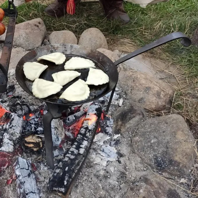 Ideel til re-enactment og LARP-lejren. Dette historiske stativ er demonteret, så du kan endda tage det med dig i en rygsæk. Dette stativ er en kopi af et 10.-11. århundrede udbredt udgravet på Skipsea i Lincolnshire. Denne type stativ blev allerede brugt af romerne. Modellen er forblevet næsten uændret indtil 1800-tallet.