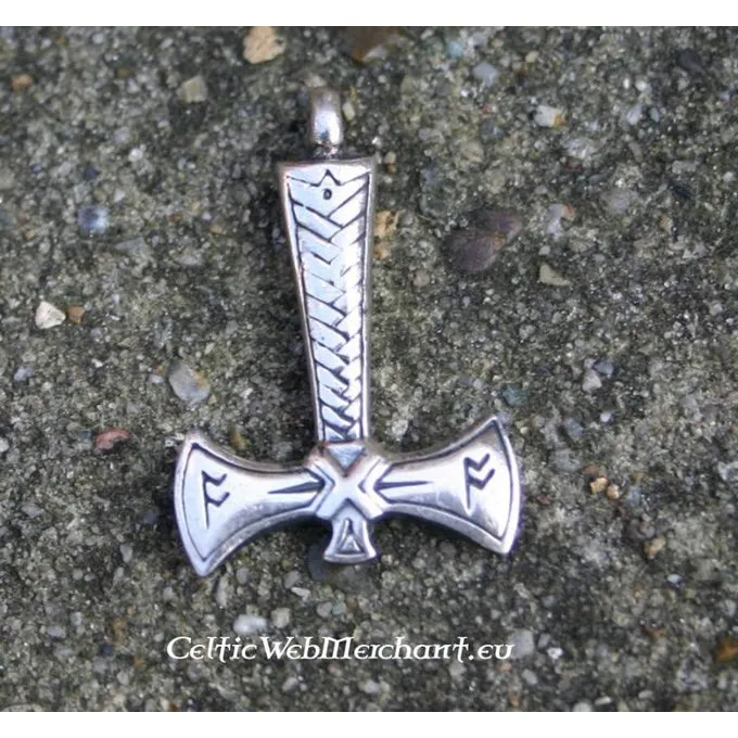 Denne dobbelte økse vedhæng er lavet af sterlingsølv og måler 30 x 20 mm. Det vejer ca.. 6,1 g