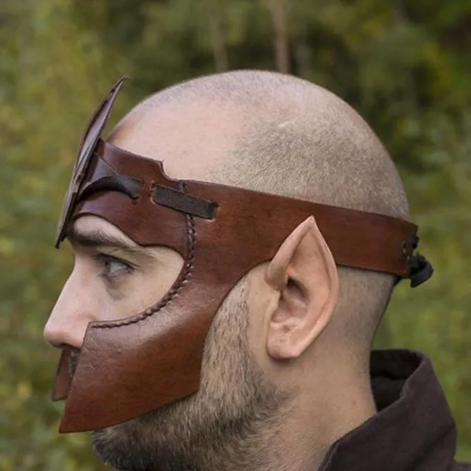 Dette pandebånd er en væsentlig del af den Elven kostume. I midten er det dekoreret med et stort blad at understrege det naturlige bundne ånd alf. For en bedre pasform og bedre beskyttelse, har dette hoved band foring på kinderne.