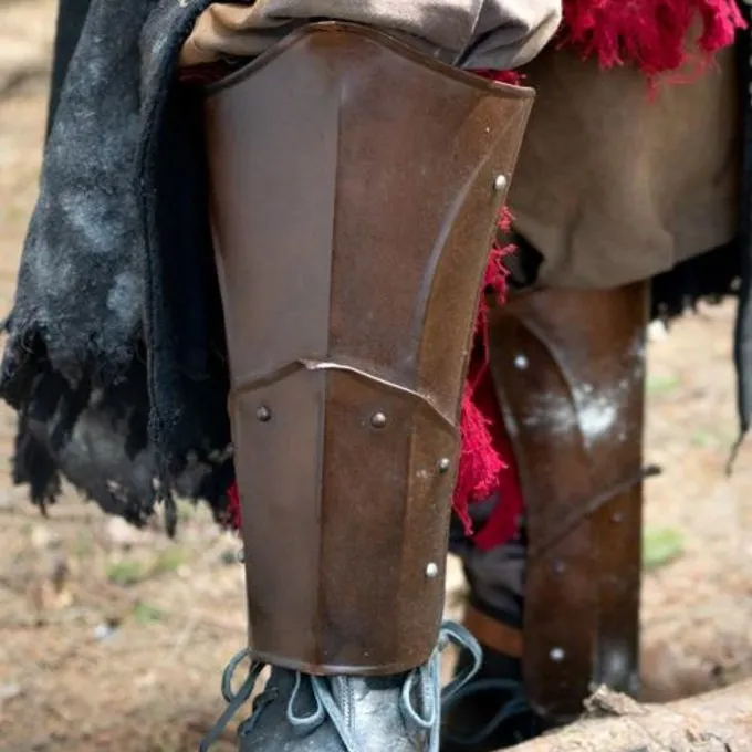 Materiale: blødt stål / / Levering inkluderer: chestplate med læder ryg, skulder rustning, armbeskyttere i plade og fedtegrever / / Stål tykkelse: 1 mm / / Finish: brunpatineret / / Størrelse: M & L /