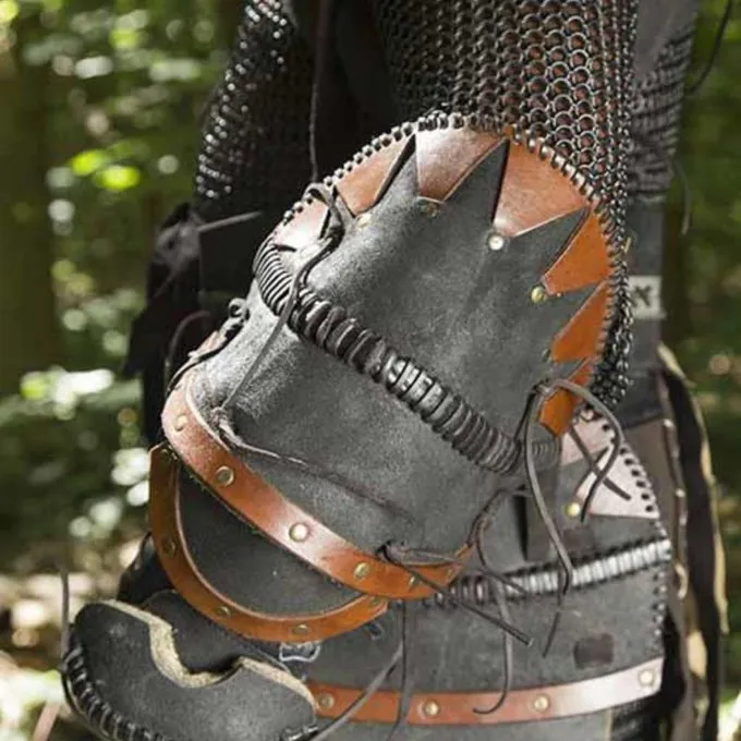 Disse larp armskinner er lavet af høj kvalitet vegetabilsk garvet læder. De består af stykker af læder syet sammen med læder snorer. Den syninger er klart synlig for et håndgjort look. Læderet har ingen glat overflade, og derfor har et råt look, perfekt til Orc LARP.