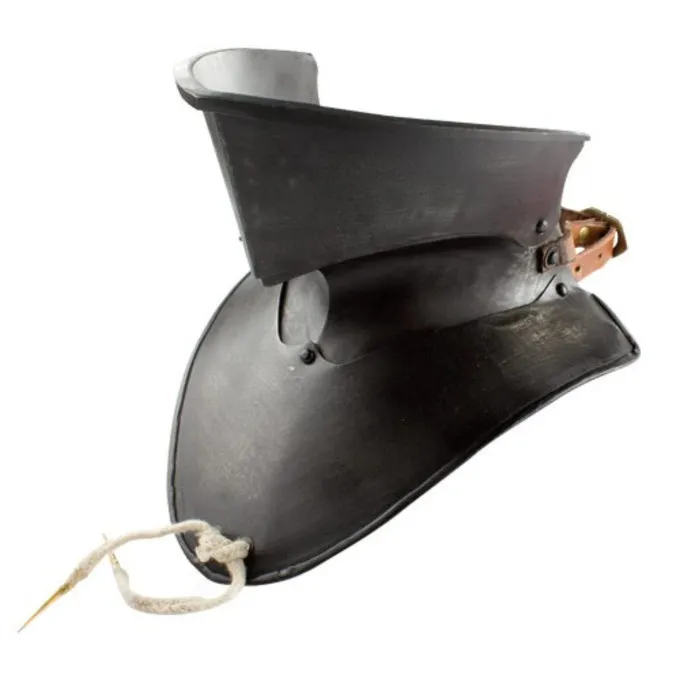 Materiale: kulstofstål; / / Stål tykkelse: 1 mm; / / Finish: patinerede / / Forreste længde: 16 cm / / Bredde Gorget: 24 cm / / Højde hals: 11 cm / / Baseret på en historisk original