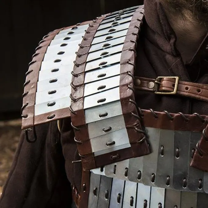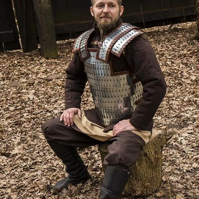 Denne lamellar rustning er baseret på resterne af lameller, der findes i Sverige, i de historiske Viking byerne Visby og Birka. Lamelformet rustning blev anvendt fra den tidlige middelalder indtil den sene middelalder og var især populær blandt de germanske folk og vikingerne. Selv forbliver fra omkring 1361 er blevet udgravet. Denne rustning består af stål lamellare plader, der er syet på en fast brun læder base. Læderet har smukke autentiske detaljer, såsom korssting og foring af kanterne med et tykt læder tråd. Den rustning beskytter brystet, skuldre, overarme, mave og ryg. Bagsiden består af en robust læder rustning. Den rustning har seks stropper til at justere det til størrelse, så det er egnet til næsten alle størrelser.