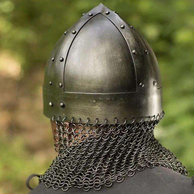 Denne vikinghjelm er baseret på den historiske Spangenhelm, dette var en af de mest populære typer hjelme i de tidlige middelalder. Denne type hjelm har et næsestykke til beskyttelse af næsen og består af metalstrimler, også kaldet Spangen, som sammen forbinder metalpladerne, der danner hjelmen. Spangen hjelmen har en konisk form. Dette design har en chainmail aventail på bagsiden for ekstra hals beskyttelse.