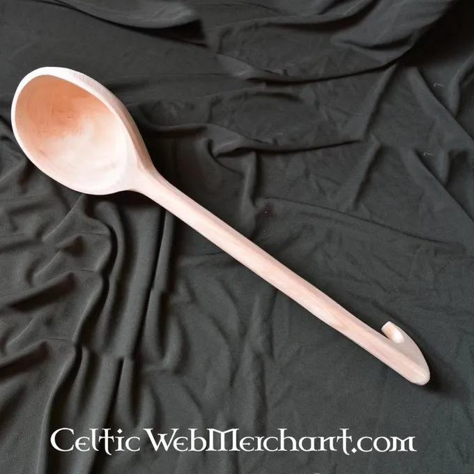 Denne slev er lavet af Espen træ. Dens længde er 48 cm, dets bredde 10 cm, og det kan nemt hænges med en krog på bagsiden.