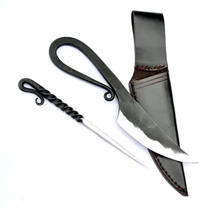 Denne håndlavede bestik sæt er baseret på forskellige forhistoriske originaler. Bestikket sæt består af en kniv og spise pick. Begge er fremstillet af kulstofstål. Kniven er hærdet til en hårdhed på 58-60 HRC.