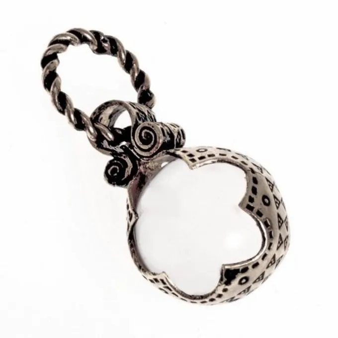 Denne smykke er en kopi af et 11. århundrede original fundet på Gotland. Bjergkrystal var også meget populær blandt vikingerne i den tidlige middelalder. Store og små stykker af bjergkrystal blev brugt i smykker. Denne replika har polerede glas i stedet for bjergkrystal.