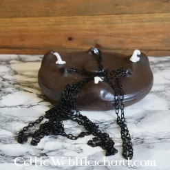 Denne keramik olielampe er lavet efter en tidlig middelalder original. Det er helt håndgjort af leret fra Rhinlandet, som blev handlet omkring middelalderen til Holland, Tyskland og Italien. Den leveres med en kæde.