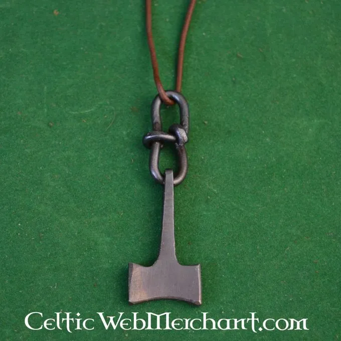 Hammeren er symbolet for Thor, gud for torden. Han blev set som den højeste gud vikingerne ved hovedsageligt bønder og krigere. Ifølge mytologien Torshammer blev smedet af dværgen Brokk og når det blev kastet det aldrig gået glip sit mål. Dette Torshammer er hånd-smedet af tre dele.