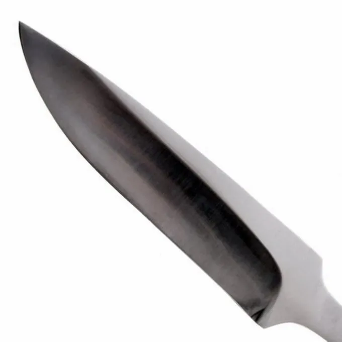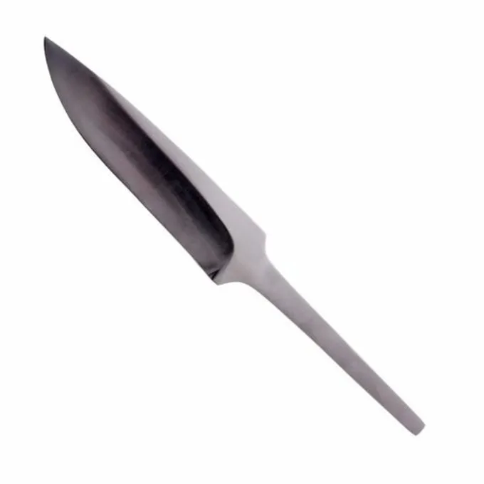 Denne hånd-smedet kniv klinge er en kopi af adskillige tidlige middelalder originaler. Knivblade som denne blev brugt i hele Europa mellem den 8. og 11. århundrede. Den er fremstillet af 1085 kulstofstål og hærdet til en hårdhed på 54-56 HRC.