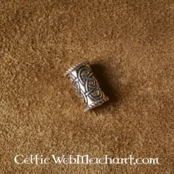 En elegant keltisk skæg perle med en keltisk knude mønster. Denne kugle har en diameter på 0,8 cm. Det kan også hænges på en halskæde eller lædersnor. Den måler ca. 1,9 x 1,3 cm og vejer 4,9 gram