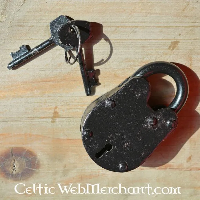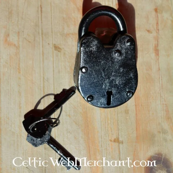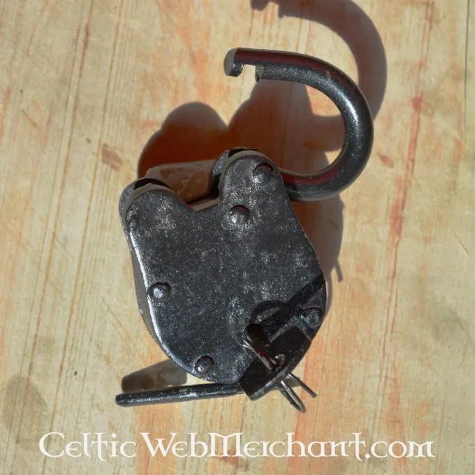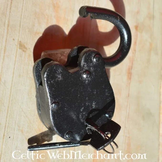 En fast hængelås stål fremstillet af nitteed dele. Dette stål hængelås måler 5,5 x 3,5 cm. Det er helt funktionelle.