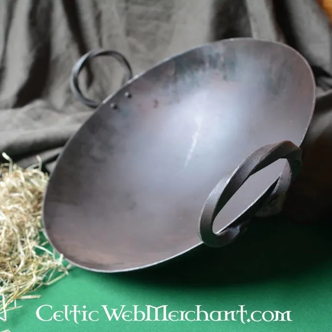 Denne gryde er håndgjort og har to greb. Jeg blev brugt for eksempel til at bage grøntsager og det fungerede som en slags middelalderlig wok gryde.
