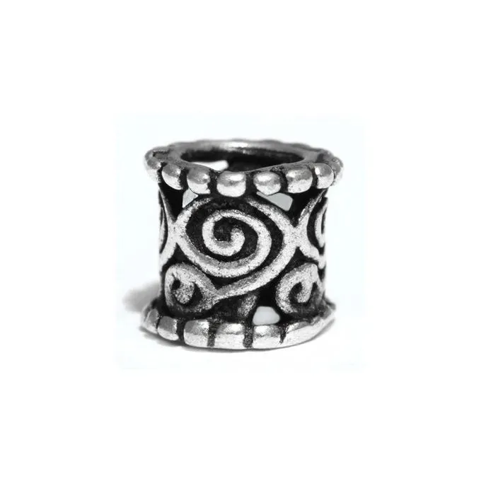 En middelalderlig skæg perle lavet af sterlingsølv. Denne skæg perle har en uendelig knude motiv. Den indvendige diameter af denne vulst er 0,3 cm, den måler ca.. 5 x 6 x 6 mm og vejer 4 gram