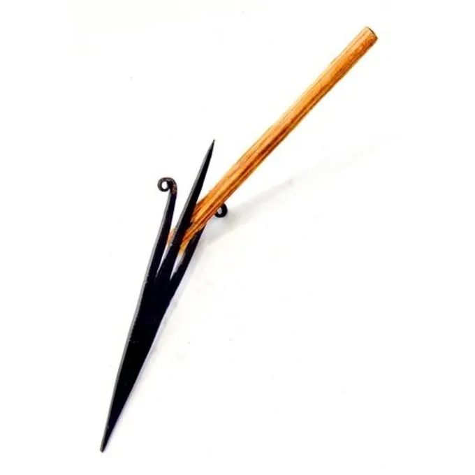 Denne holder er en kopi af et 12. århundrede original. Pindebrænde indehavere som denne blev ofte brugt i områder rige på tørv. Denne holder er håndgjort af jern. Denne pindebrænde Holderen er lavet efter en original udgravet i Irland. I dag er det en del af County Museum of Waterfort.