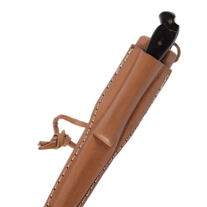 Dette sæt består af en tabel kniv og en spise pick med en smuk horn håndtag med nitter .. Kniven er ikke knivskarp, men du kan skærpe det selv med, for eksempel, en hvæssesten. Den leveres med en robust læder pose og en lædersnor, så du kan hænge det på dit bælte. Sættet er lavet af Rustfrit Stål, så det vil ikke ruste og kan rengøres hurtigt!