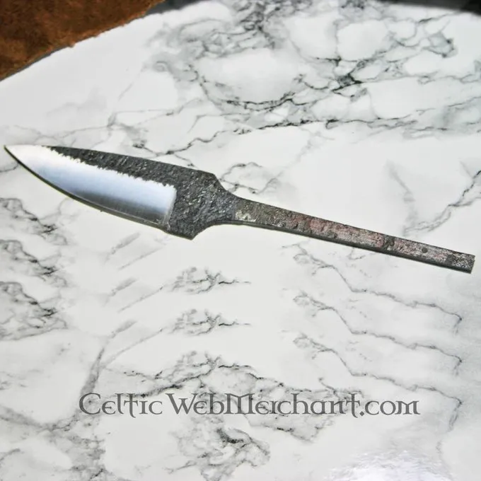Denne klinge er håndgjort af kulstofstål. Dens hårdhed er 54 HRC, det har en længde på 18 cm og en max. bredde på 3 cm. Det har en Skarp kant og stumpen side har en Tykkelse på 0,3 cm.
