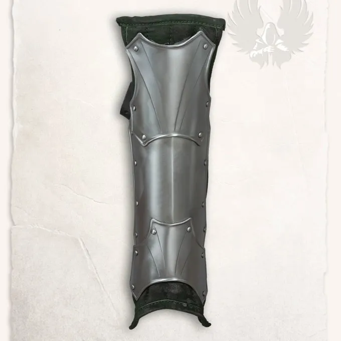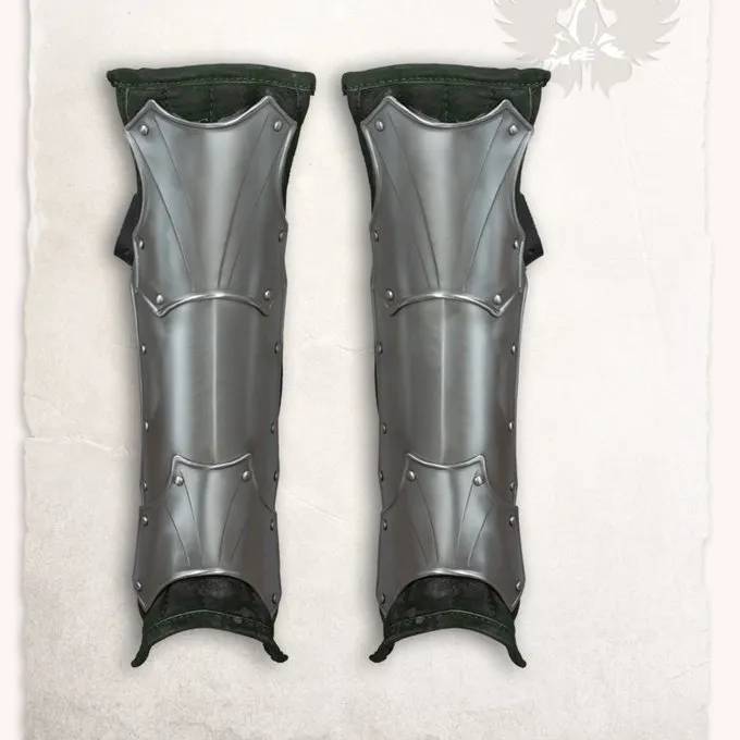 Disse Mytholon grever er egnede til larp slag, kostumer og Cosplay. De er behagelige at have på takket være den luksuriøse ruskind foring og de består af 3 segmenter, der beskytter ankler og skinneben. De har et smukt design med en unik farve. På grund af de 3 overlappende segmenter, de er fleksible, når der er trykket på rustning og vil ikke deformere. Med læderremme kan du fastgøre benskinner. De kan kombineres perfekt med de andre dele i Fafner serie eller andre tøj og rustning dele af dit valg.