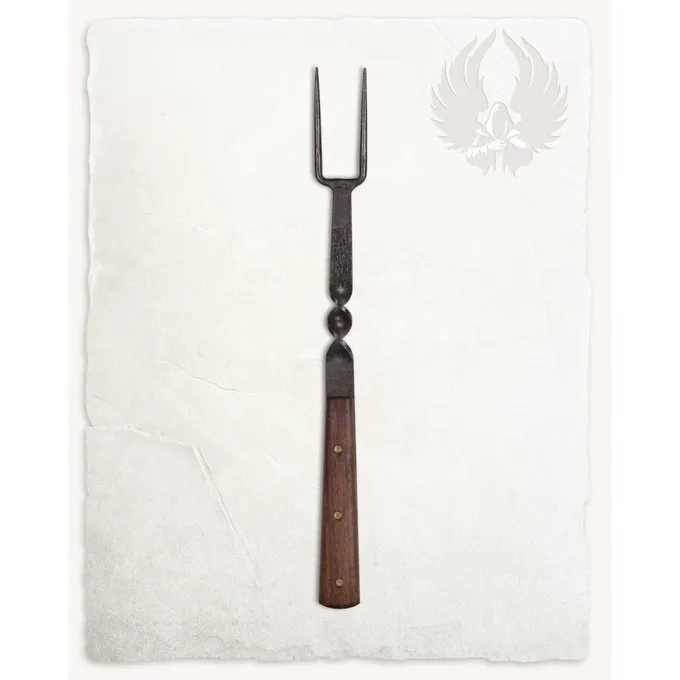 En kød gaffel af Mytholon, for LARP og reenactment. Hvis du kommer til at spise med din gruppe og har grillet eller stegt kød, kan du opdele kød over pladerne med dette kød gaffel. Denne gaffel er perfekt, hvis du ønsker at spise i perioden stil eller til historisk madlavning. Også fantastisk til museer og film, der ønsker at gøre en historisk udstilling. Gaflen har et patineret finish og ser smukt autentiske.