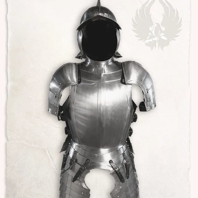 Denne halvleg rustning er lavet efter det 16. 17. århundrede originaler. Ryttere især havde denne type halv rustning. De var bevæbnet med rapiers, sabler, lanser og wheellock pistoler. Armor som dette blev båret under belejringen Malta i 1565, i løbet af de Firsårskrigen og Slaget ved Grolle, i løbet af de Trediveårskrigen og naturligvis i Tudor England. Undertiden denne type rustning blev forsynet med arm og ben rustning og bærerens ombyttet sit burgunderhjelm for en armet. På denne måde kan du tilpasse rustning for stærkt pansrede chok tropper. Denne halvleg rustning består af Pauldrons, Gorget, tassets og burgunderhjelm. Denne sele kan godt tilpasses størrelse.
