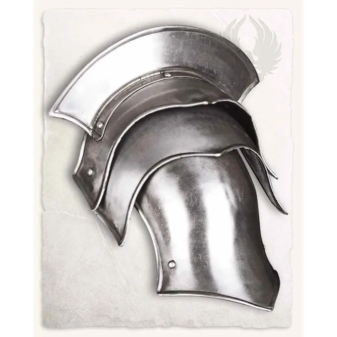 Dette produkt er velegnet til cosplay, larp og fotoshoots. Denne skulderrustning er lavet af 1,22 mm stål. Skulderrustningen har klingebrydere. Disse sikrer, at bæreren forekommer bredere og dermed også giver bæreren et heroisk look.