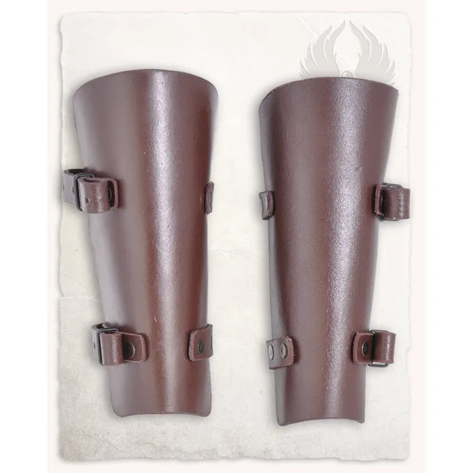 Disse Vambraces er egnede til reenactment, cosplay og larp. VAMBRACES er lavet af delt læder. Dette materiale sikrer, at Vambraces er meget robuste og meget fleksible. På grund af det enkle design af VAMBRACES, kan de bruges til mange forskellige kostumer.