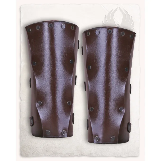 Disse Vambraces er egnede til reenactment, cosplay og larp. VAMBRACES er lavet af delt læder. De er lavet på en sådan måde, at læderet ser ud til at have en bølget effekt. Dette gør bestemt disse Vambraces en øjenfanger. Vambraces er også meget komfortable og kan lukkes med tre bælte spænder.
