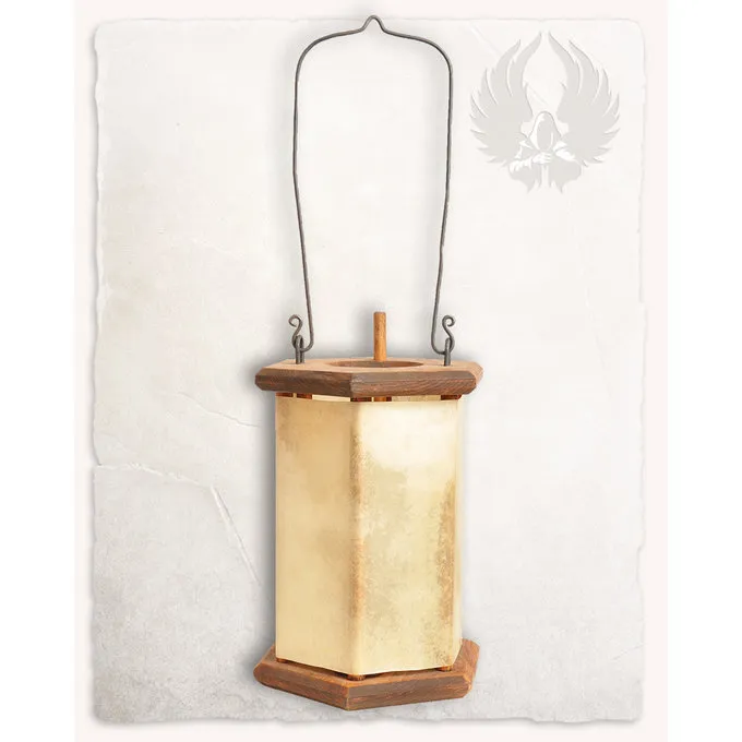 Disse lanterner blev allerede brugt i vikingetiden. Den er lavet af træ og råhud. Lyset skinner igennem råhud. Lanterner plejede at være meget vigtigt på grund af brandfare. Denne lanterne er udstyret med en stål håndtag, hvormed den kan hænges eller taget med dig. Du kan også hænge det på en lanterne holder i haven eller i lejren.