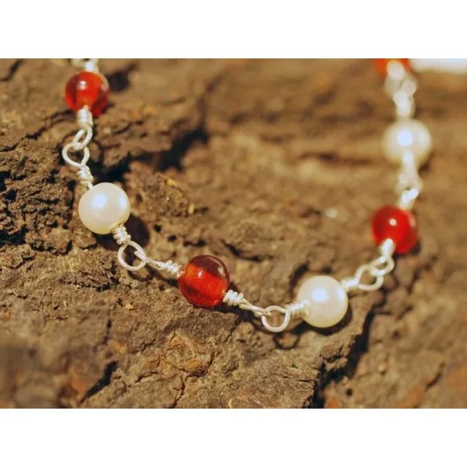 Denne halskæde er en kopi af en romersk original fra det 1.-2. århundrede e.Kr.. Den oprindelige er en del af samlingen af Altes Museum i Berlins. Dele af necksnører ofte fundet under arkæologiske udgravninger. Denne type halskæde er ofte afbildet på freskomalerier af kvindelige portrætter. Denne halskæde er lavet af sterlingsølv og har glasperler med 6 mm. Halskæden er 40 cm lang