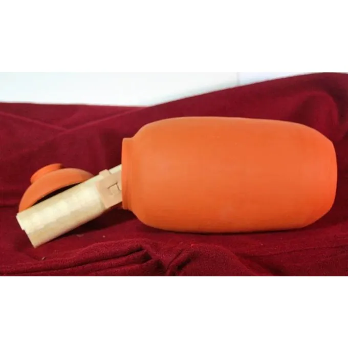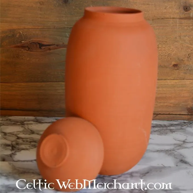 Denne cylinder er helt håndgjort af rødt ler. Den er lavet på en potter`s hjul og har et låg. Det er helt funktionel og kan bruges til storaging papyrusruller. Det har en højde på 22 cm og en diameter på 11 cm