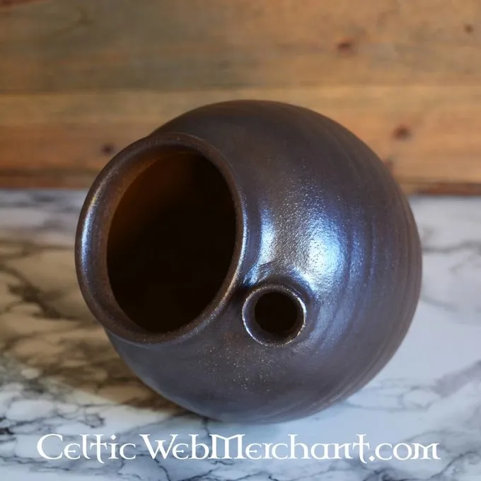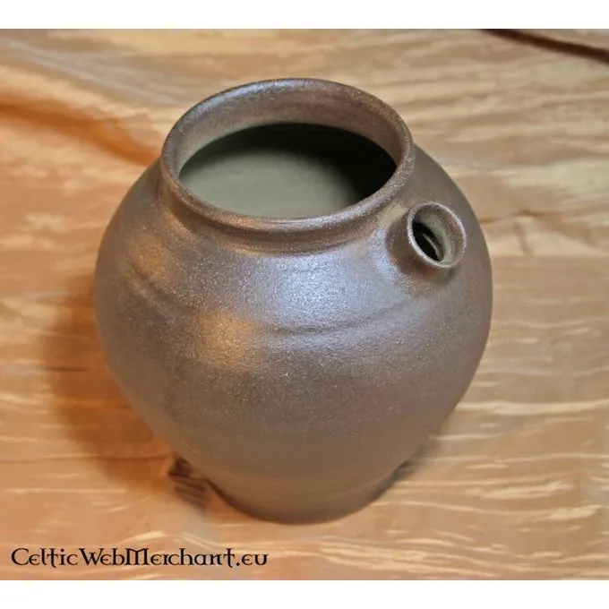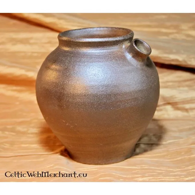 Denne kande er lavet efter en original fra det 8.-9. århundrede. Kander som denne fandt sted i hele Nordeuropa. Det er helt håndgjort af leret fra Rhinlandet, der blev handlet til Holland, Tyskland og Italien omkring middelalderen.