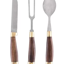 Denne bestik sæt består af en kniv, en ske og en gaffel. Den er baseret på originaler fra femtende til det syttende århundrede. Sådanne sæt kan ses, for eksempel i malerier af de hollandske mestre. Bestikket har et smukt træskaft med messing dekoration. Sættet leveres med en brun læderpung til at gemme bestik godt. Bestikket er lavet af Rustfrit Stål, så det er let at rengøre og ikke ruster.