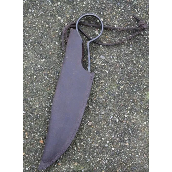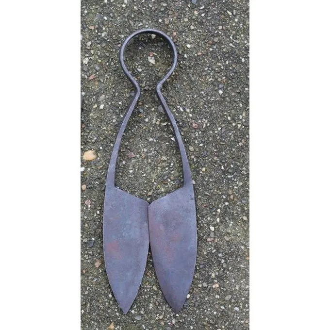 Disse jern saks er hånd smedet. Saksen leveres herunder et dække af 2 mm tyk okselæder. Deres længde er 23 cm, og deres bredde er 7,3 cm.