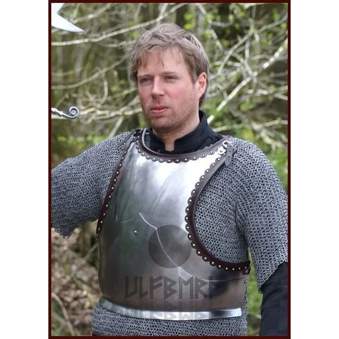 Denne brystplade er fremstillet af 1,6 mm tykt stål. Den er forsynet med læderremme til at fastgøre den til ryggen. Denne brystplade er egnet til en brystmål op til 130 cm. Den vejer 2,8 kg