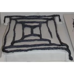 Denne gryde er hånd smedet af stål. Det har to greb, hvorigennem et hængsel kan sættes. Den pan er sværtet og olieret med smedning sod. Det anbefales at fjerne olien med varmt vand eller ståluld før brug, eller at koge olie på et lejrbål.
