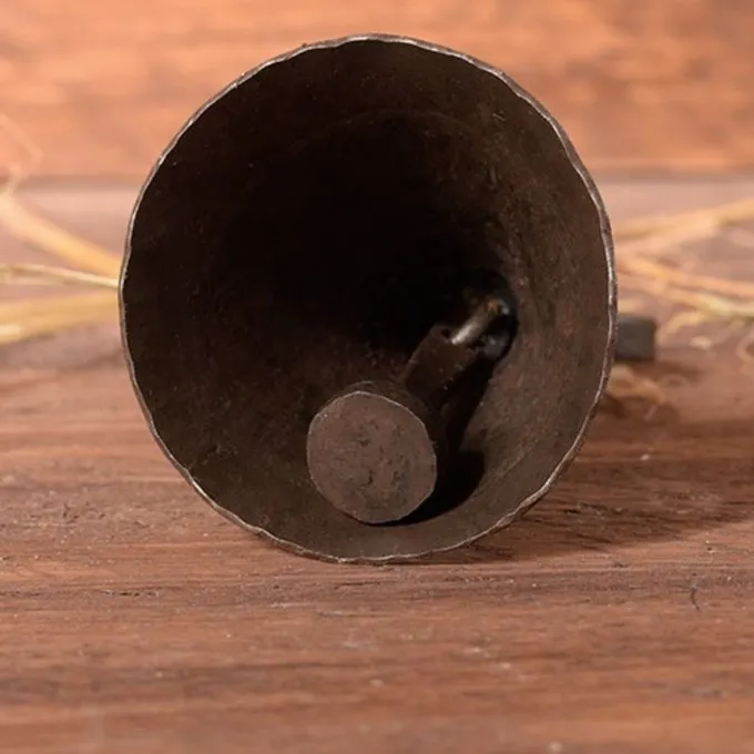 Denne klokke er håndsmedet efter historiske originaler. Bells som denne blev brugt fra middelalderen til omkring det attende århundrede. Denne klokke er en mindre design ca. 12 cm. Bells er hovedsageligt forbundet med kirkeklokker, men mindre klokker som denne blev hængt bag døren i en butik for at høre folk kommer i. Folk også brugt klokker til at holde orden, for eksempel i klasseværelset. En stor tilføjelse til din historisk interiør, til museer og re-enactors.