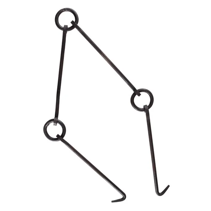 Denne hånd-smedet stål kæde er det perfekte værktøj til at hænge pander og kedler over en brand på et stativ. Mere praktisk end en kedel krog og afgørende for din historiske køkken, eller hvis du er madlavning i haven eller ved et arrangement over åben ild. Med smart designet kæde kan du hænge pander i fire forskellige højder, fra ca.. 25 cm til 1 meter over ilden. Du kan også bruge kæden til at lave mad på forskellige stadier, for eksempel en gryde, der har brug for mere varme i bunden og et fad, der skal simre i lang tid i en gryde på toppen. Hvis du ikke er madlavning, kan du bruge kæden til at hænge dit kogegrej på den, så at alt ikke er rodet på gulvet. Også en sjov måde at vise din historiske madlavning samling til besøgende på en begivenhed.