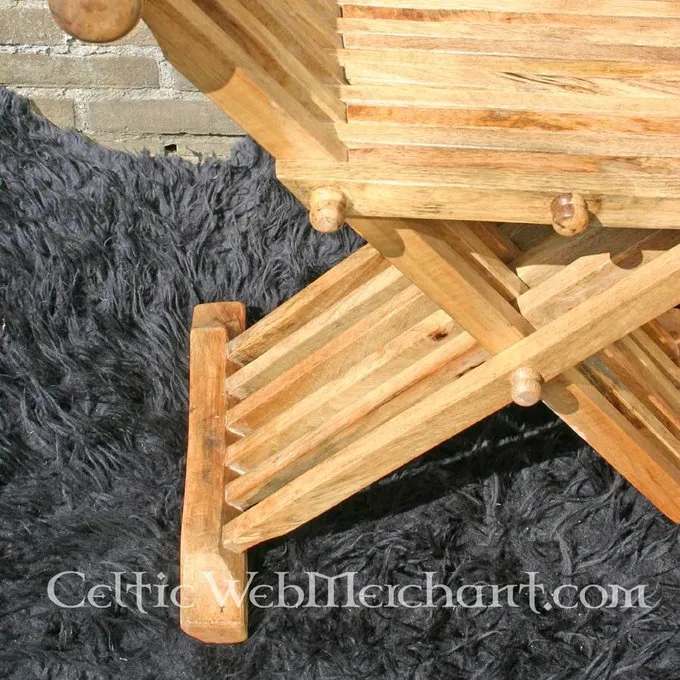 Dette træ middelalderlige stol er baseret på forskellige sene 10. – 15. århundrede stykker. Disse stole var meget praktisk for kampagner, som de kunne være let foldes. Stolen er 70 cm høj og har et sæde på 51 cm. Det vejer ca.. 9 kg.