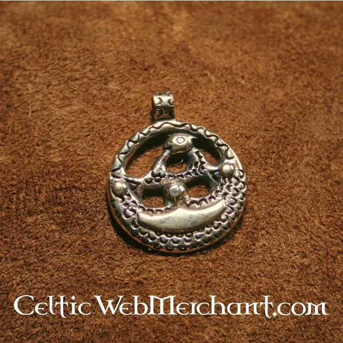 Denne juvel er håndgjort af bronze og har en diameter på 3,3 cm.