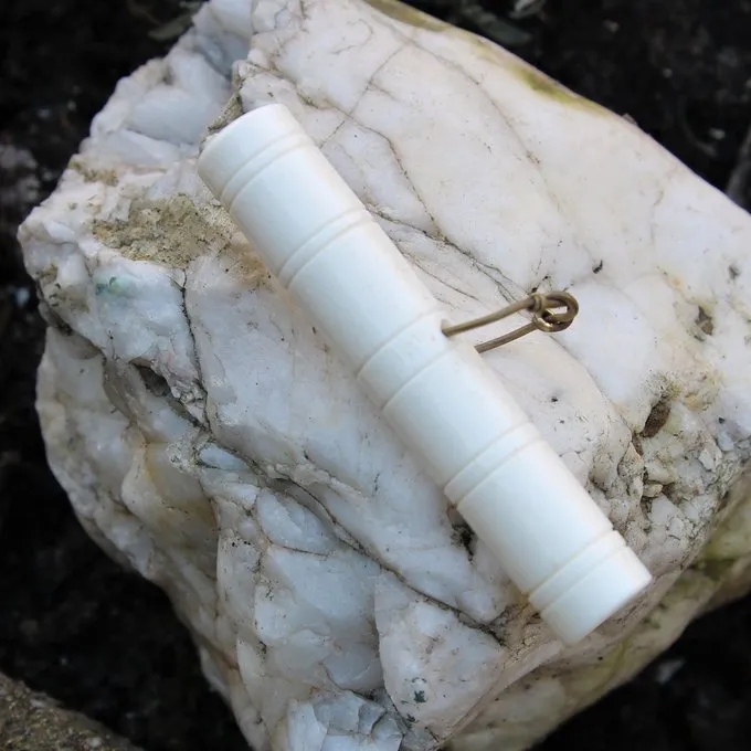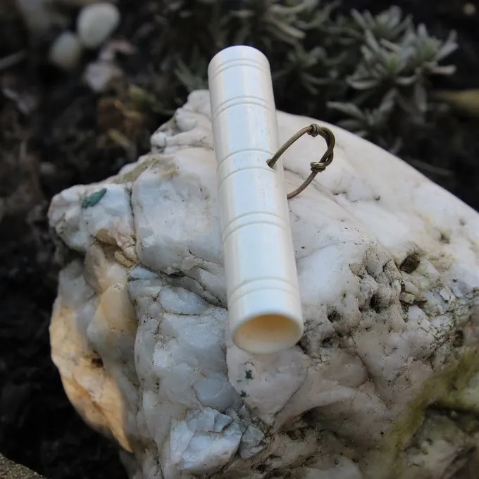 Materiale: knogle / / Størrelse: 8 x 1,8 cm / / Diameter åbning: 1 cm / / Baseret på en historisk original